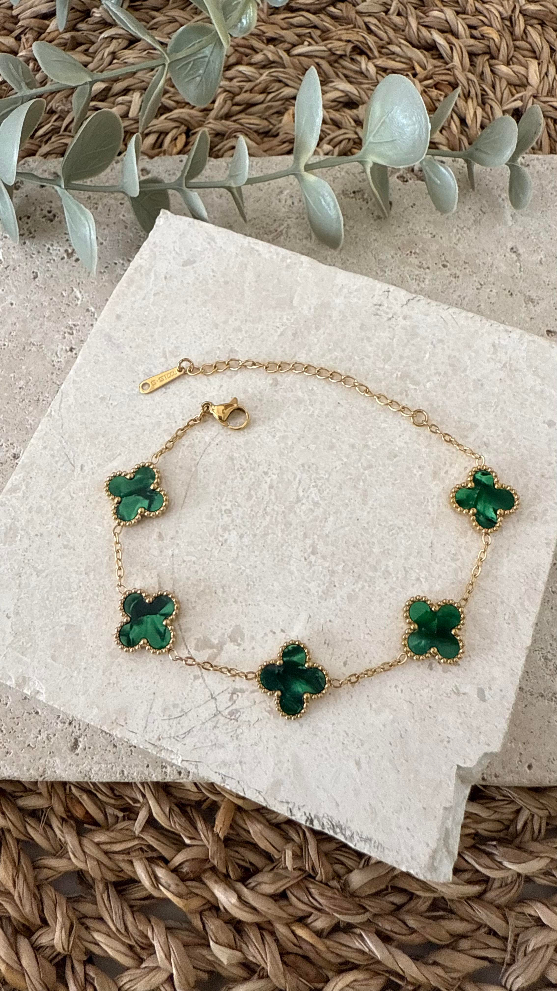 Çelik Gold Renk Yeşil Renk Yonca Bileklik