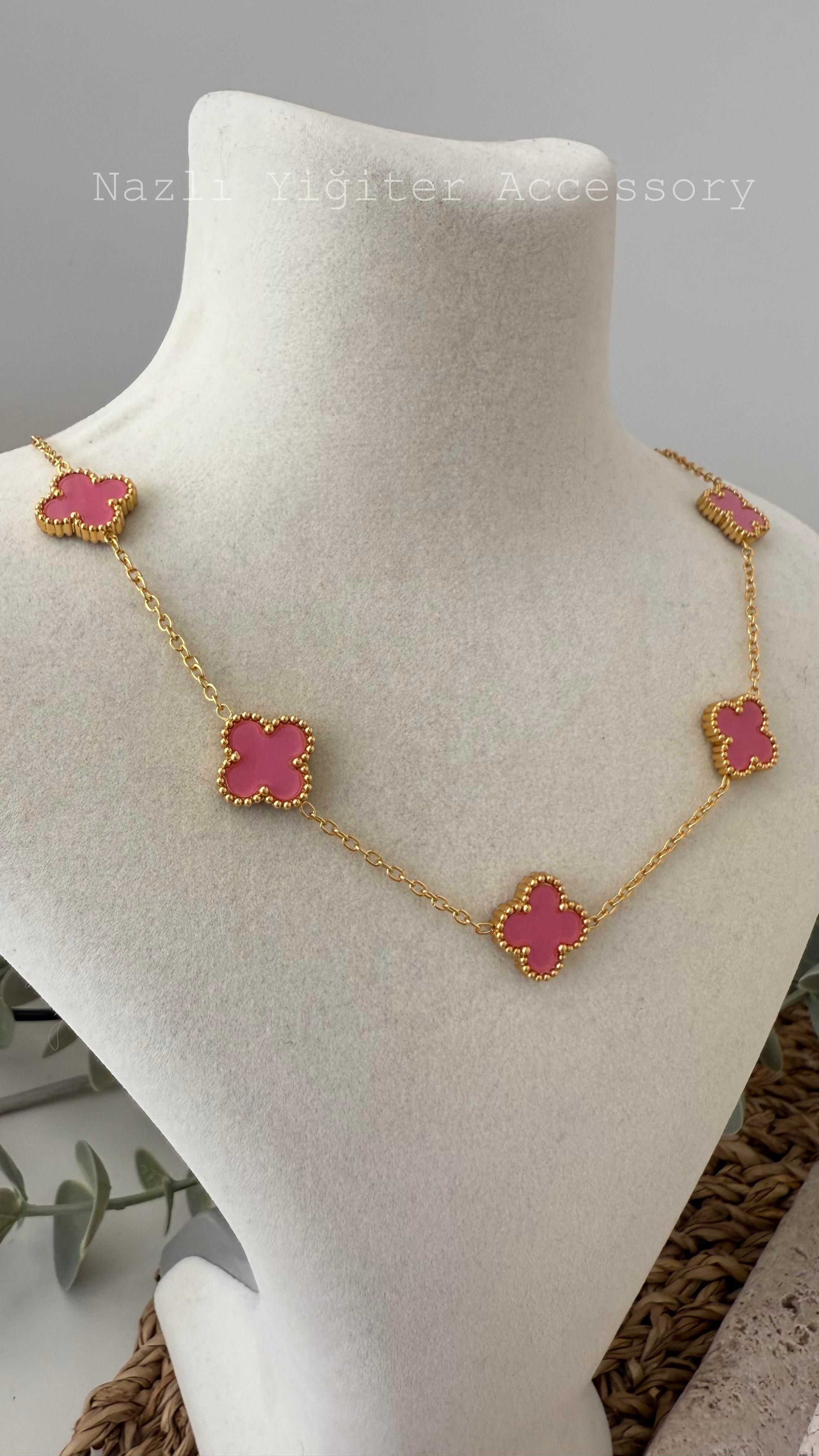 Çelik Gold Renk Yonca Pembe Kolye (NYB-3442)