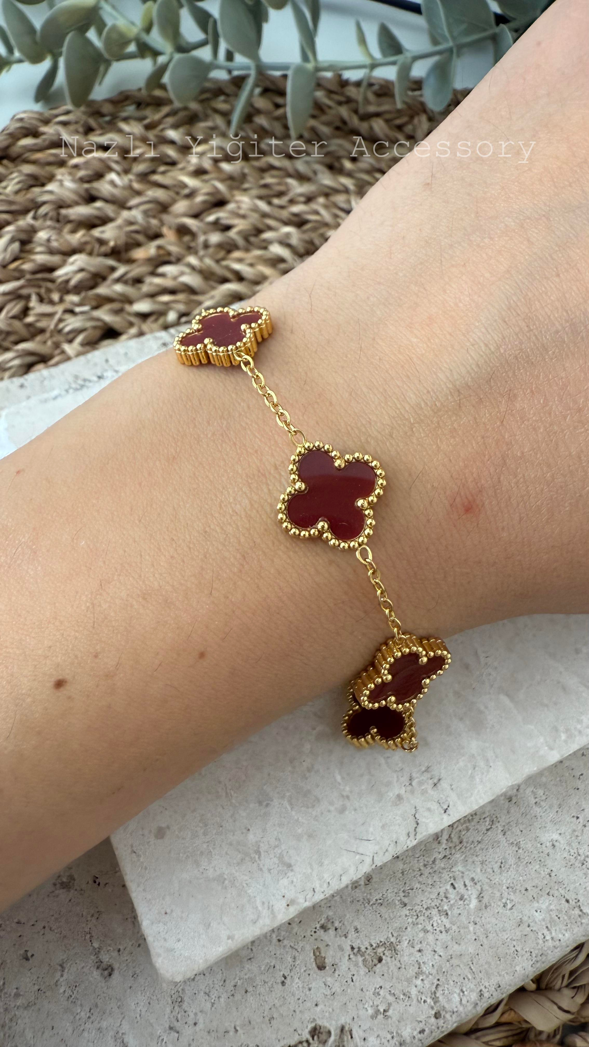 Çelik Gold Yonca Bordo Bileklik (NYB-3430)