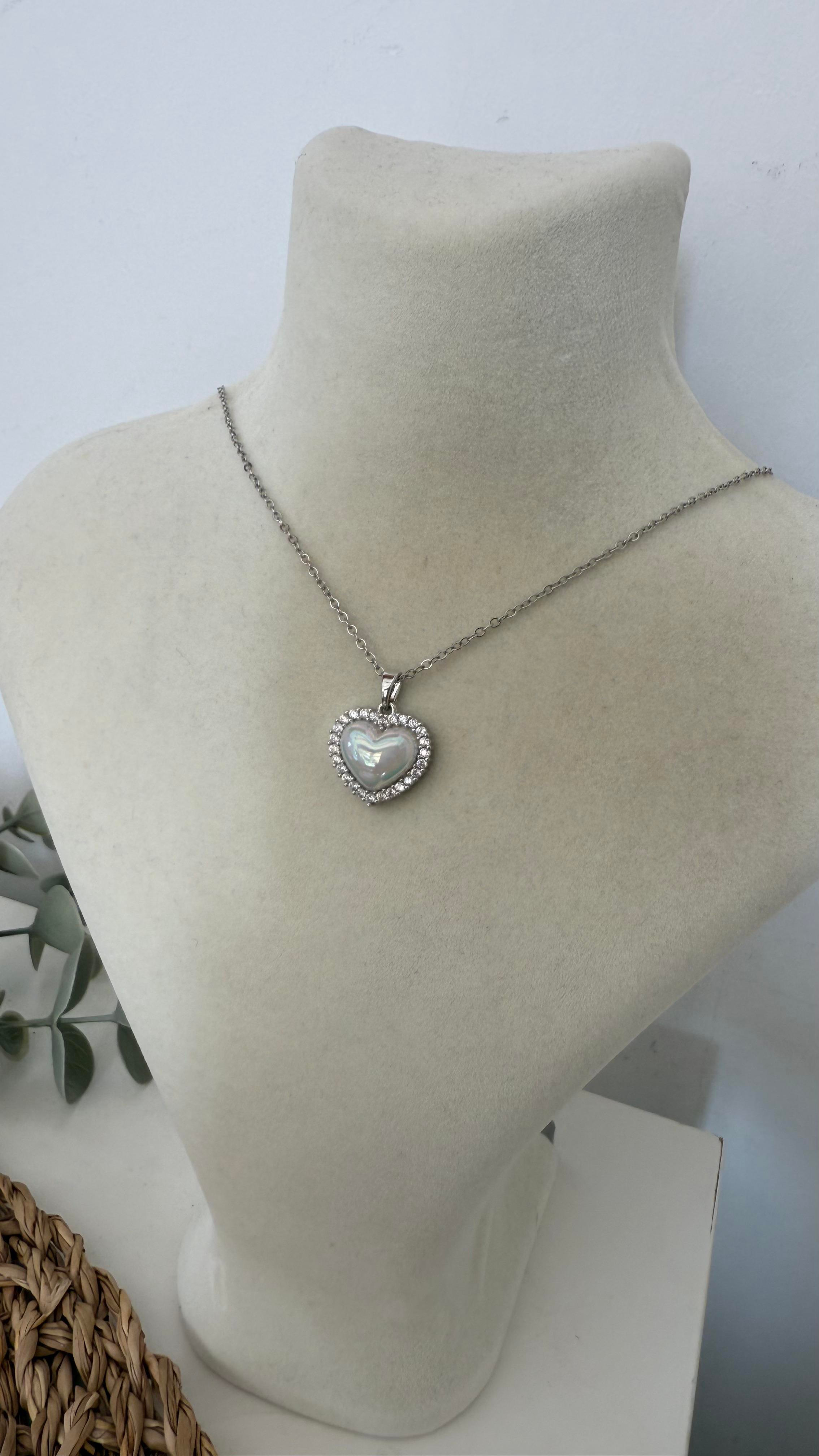 Çelik Gümüş Renk Kalp Uçlu Kolye 40+5cm