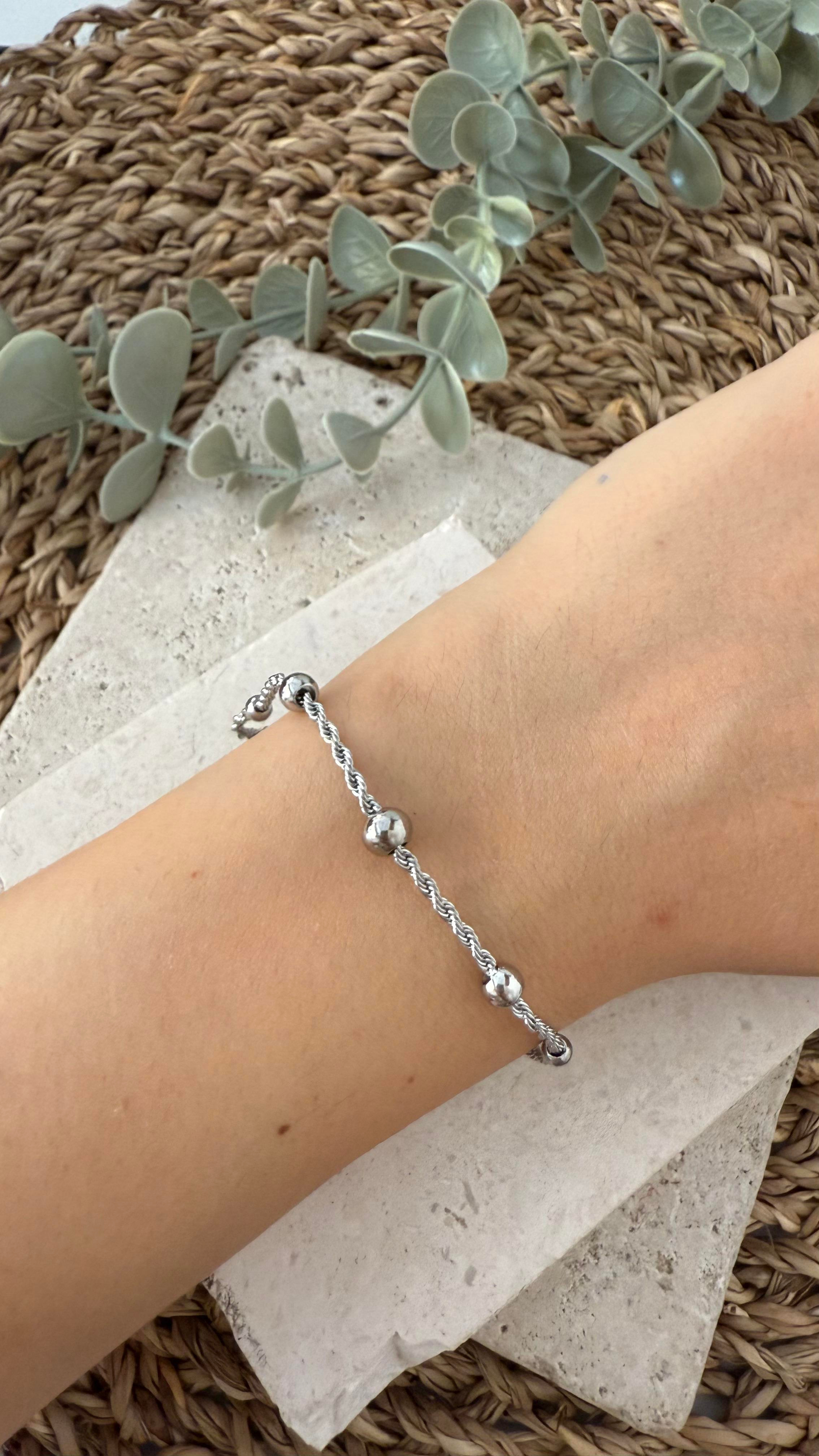 Çelik Gümüş Renk Top Detay Bileklik (NYB-3666)