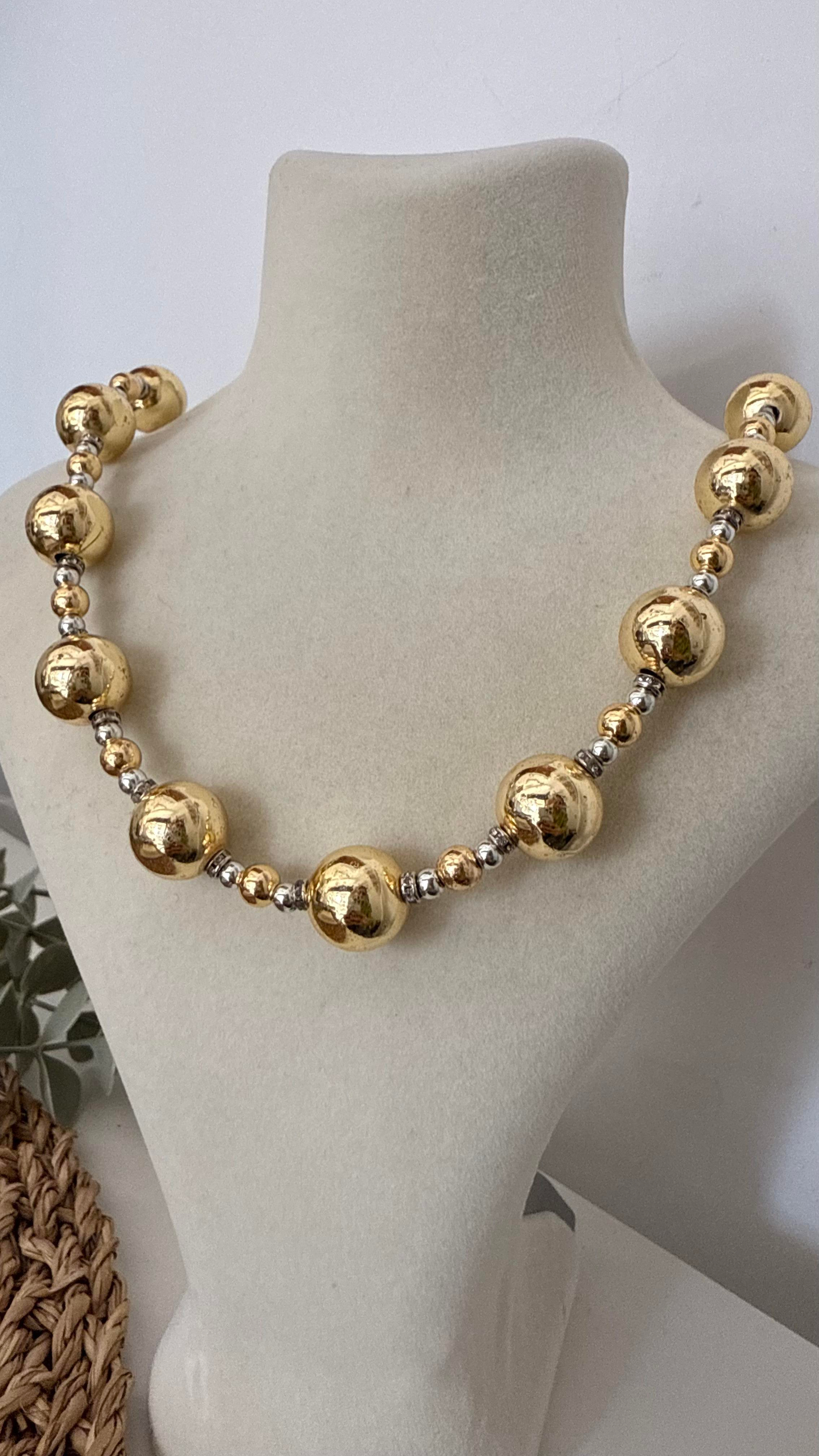 İthal Gold-Gümüş Renk Boncuk Kolye 45+6cm