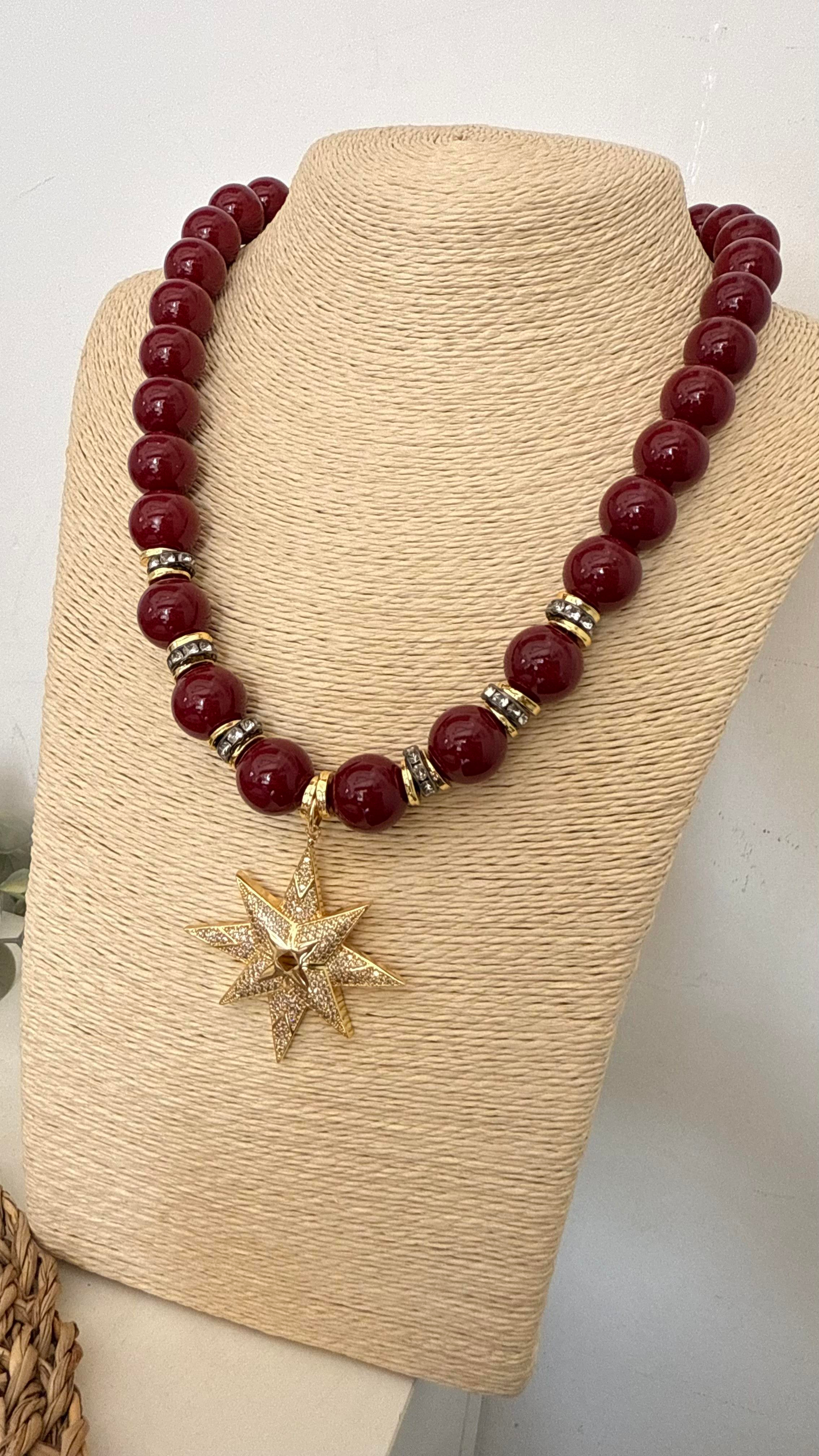 İthal Gold Renk Bordo Boncuk Kolye 45+6cm