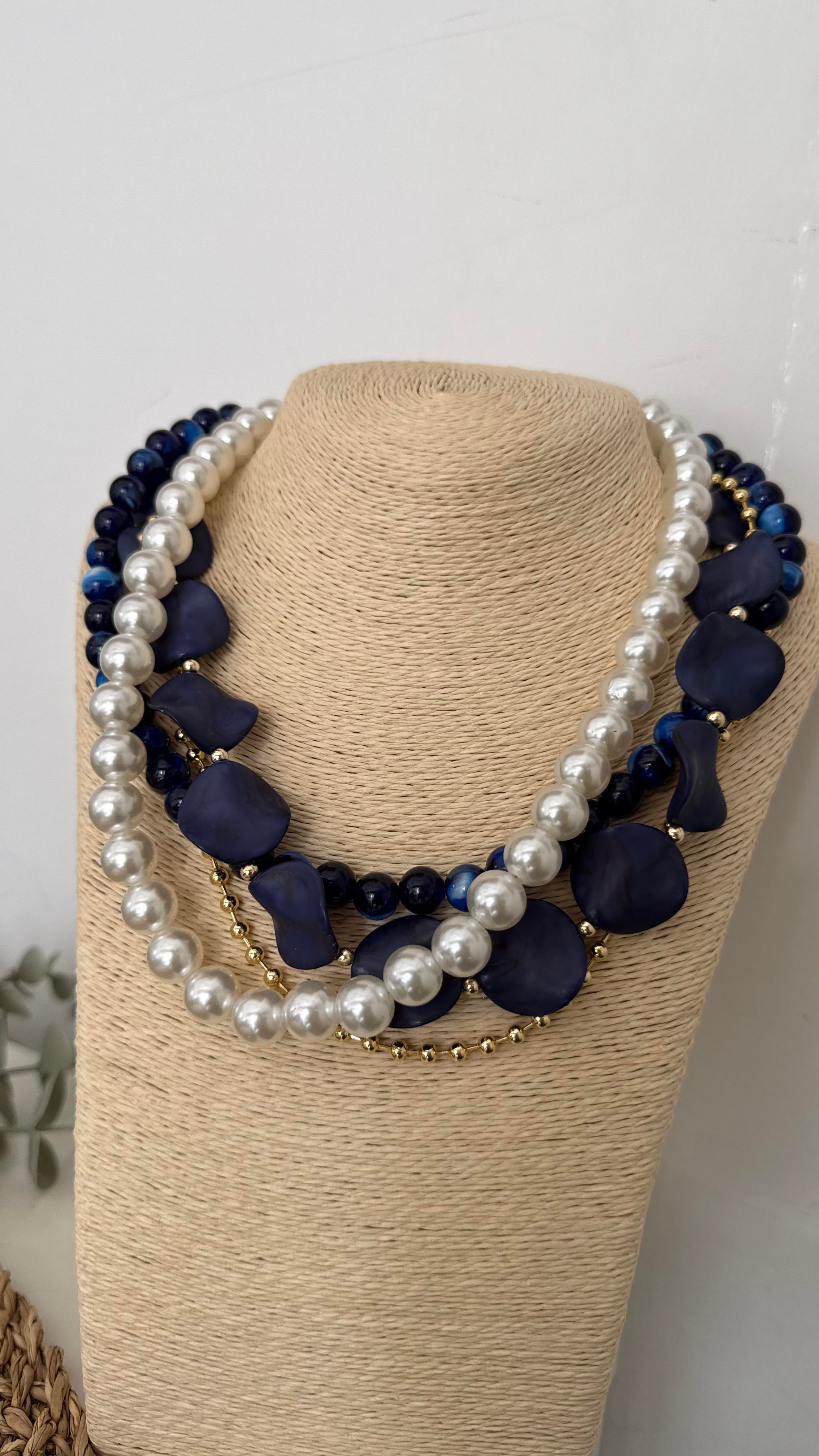 İthal Gold Renk Lacivert 4Lü Boncuk Kolye 45+6cm (NYB-3693)