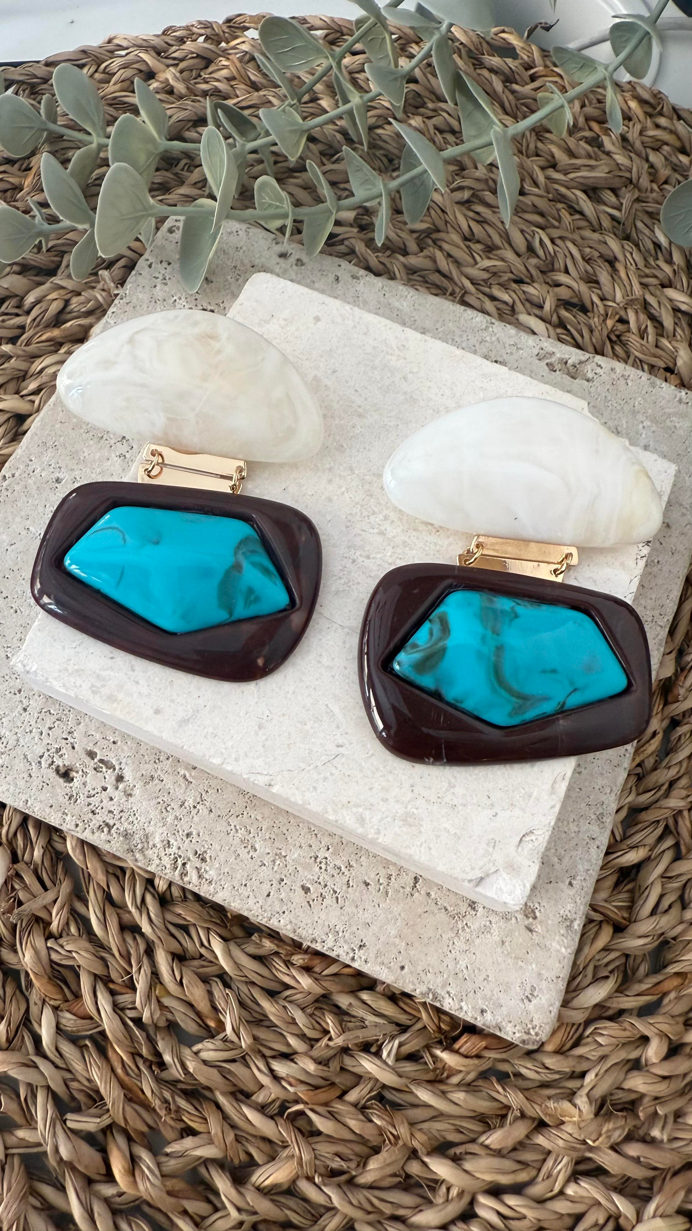 İthal Gold Renk Mavi Taşlı Küpe (NYB-3573)