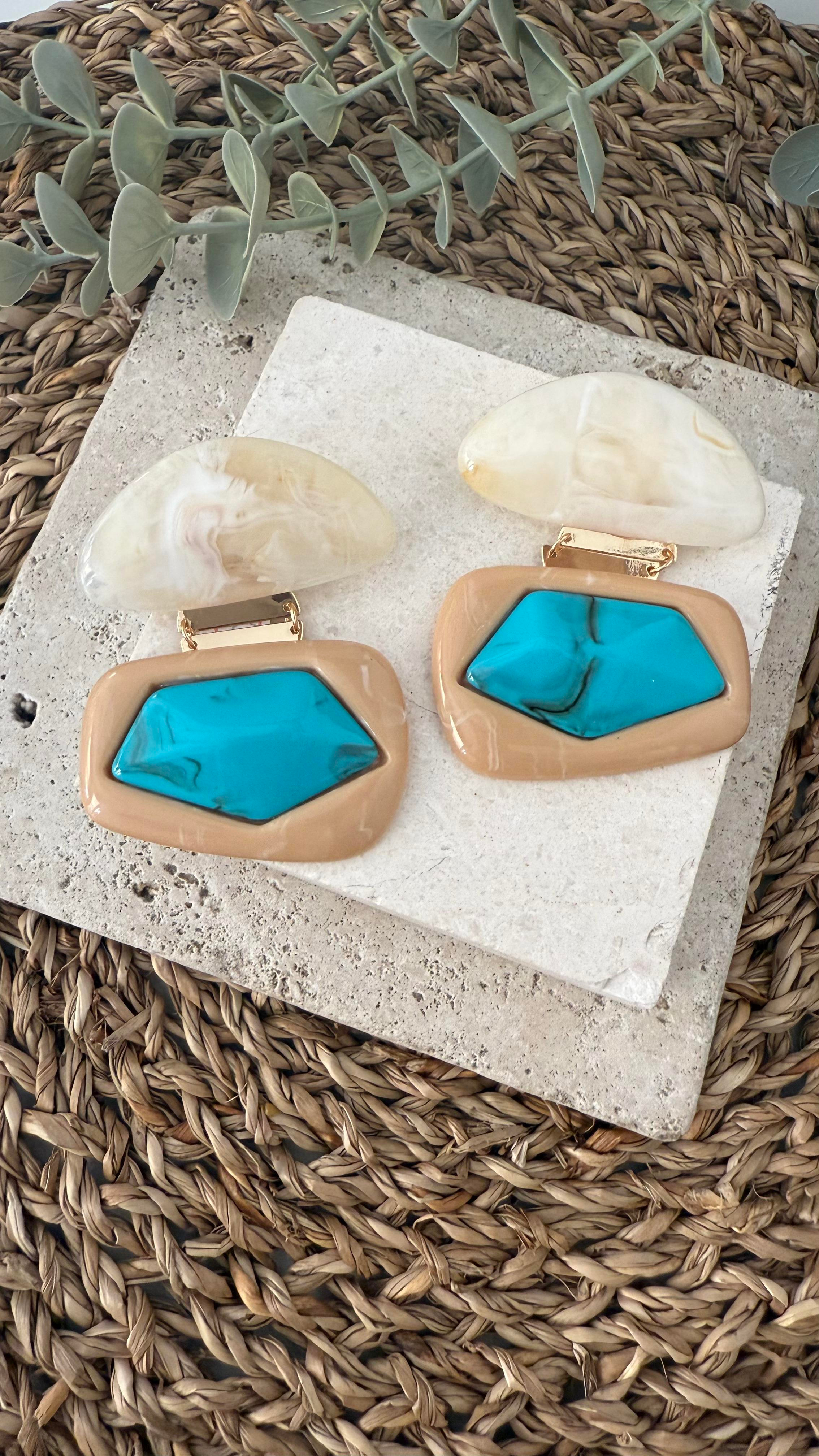 İthal Gold Renk Mavi Taşlı Küpe (NYB-3574)