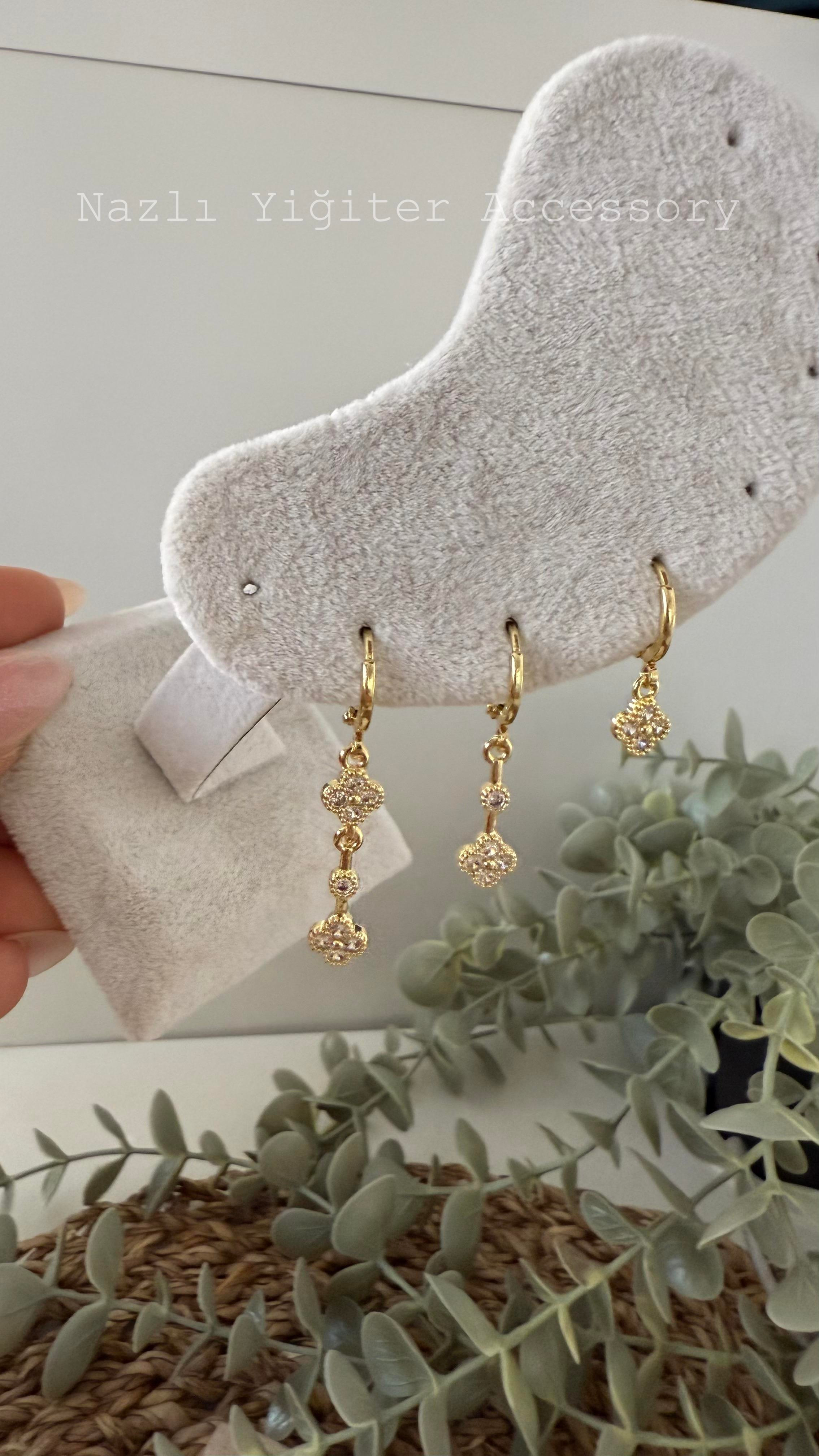 Zirkon Üçlü Gold Renk Küpe (NYB-3530)